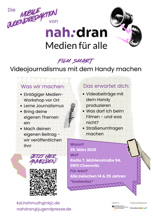 ✔ Zusammenarbeit mit Profis aus Journalismus & Medien, wie z. B. Radio-T und der Filmwerkstatt Chemnitz